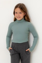 Однотонная детская водолазка из эластичного трикотажа кашкорсе. Длинные рукава. Высокая горловина с отворотом.