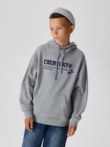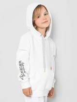 Трикотажное худи с капюшоном из однотонного петельчатого футера с принтом. Спереди удобный накладной карман-кенгуру. Манжеты и пояс из эластичного трикотажа в рубчик.