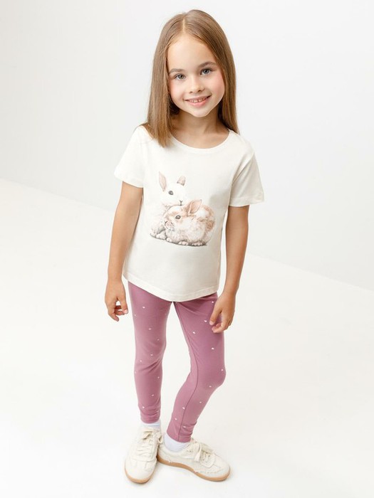 Футболка для девочки из гладкого трикотажа, произведённого из высококачественного натурального хлопка. Оригинальный принт выполнен из стойких текстильных гипоаллергенных красителей. Изделие сохраняет цвет и форму после многократных стирок. Все трикотажные полотна производятся в соответствии с нормами швейцарского сертификата ЭкоТекс.