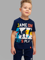Трикотажная футболка для мальчика из натурального хлопка. Оригинальный принт выполнен из стойких текстильных гипоаллергенных красителей. Изделие сохраняет цвет и форму после многократных стирок.