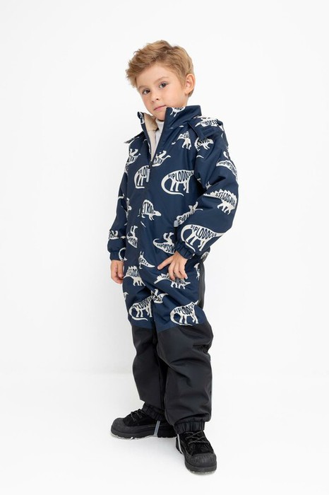 Демисезонный комбинезон для мальчика с утеплителем SEE®: 120 г/м2. Выполнен из мембранной ткани с дополнительной тефлоновой обработкой. Данный вид обработки предохраняет изделие от загрязнения и лучше отводит влагу. Подклад из 100% полиэстра. Удлиненная молния для легкого одевания с защитой подбородка. Ветрозащитная планка фиксируется на липучках и кнопках. Несъемный капюшон с эластичной резинкой и застежкой на липучку. По низу рукавов и брючин, а также на спинке изделия предусмотрена эластичная резинка для лучшего прилегания. Область коленей дополнительно усилена деталями из основной ткани. Предусмотрены боковые карманы на молнии. Для фиксации комбинезона используются съемные силиконовые штрипки. Во всех изделиях верхнего ассортимента для безопасности ребенка предусмотрены светоотражающие элементы.
