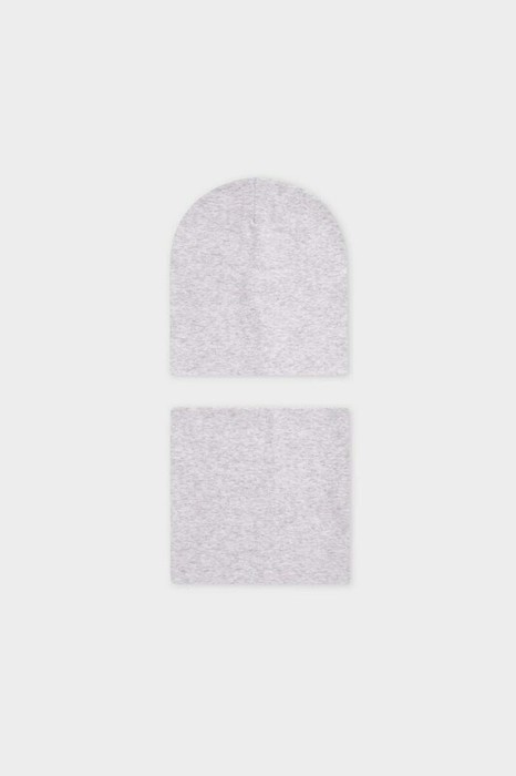 Комплект для мальчика: шапка и снуд из хлопкового трикотажа с добавлением эластана, окрашенного стойкими гипоаллергенными текстильными красителями. Изделия хорошо тянутся, после многократных стирок сохраняют цвет и форму.