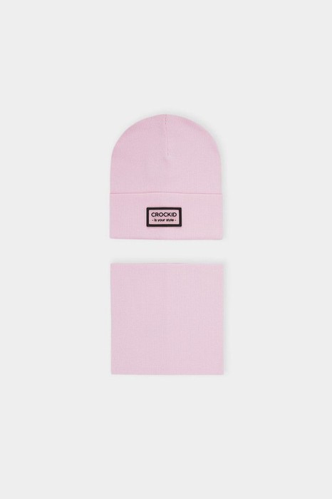 Комплект для девочки: шапка и снуд из хлопкового трикотажа в рубчик с добавлением эластана, окрашенного стойкими гипоаллергенными текстильными красителями. Изделия хорошо тянутся, после многократных стирок сохраняют цвет и форму.