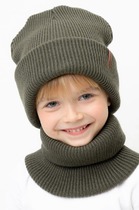 Комплект для девочки: шапка и снуд из хлопкового трикотажа в рубчик с добавлением эластана, окрашенного стойкими гипоаллергенными текстильными красителями. Изделия хорошо тянутся, после многократных стирок сохраняют цвет и форму.