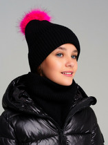 Комплект демисезонный из шапки с отворотом и снуда. Связан из высококачественного хлопка и выполнен переплетением ластик. Комфортно прилегает, обеспечивая защиту от холода и хороший теплообмен. Изделия хорошо переносят многократные стирки, сохраняя цвет и форму.