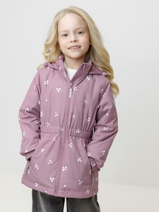 Демисезонная куртка для девочки с утеплителем SEE 120 г/м2. Выполнена из мембранной ткани с дополнительной тефлоновой обработкой. Данный вид обработки предохраняет изделие от загрязнения и лучше отводит влагу. Подклад из 100% полиэстра. У изделия предусмотрена защита подбородка. Несъемный капюшон регулируется с помощью эластичного шнура со стопперами. Низ рукавов изделия имеет эластичную резинку для лучшего прилегания. На талии эластичная резинка. Спереди два кармана на замках. Во всех изделиях верхнего ассортимента для безопасности ребенка предусмотрены светоотражающие элементы.