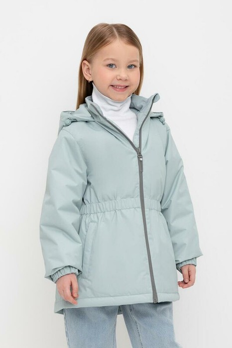 Демисезонная куртка для девочки с утеплителем SEE®: 120 г/м2. Выполнена из мембранной ткани с дополнительной тефлоновой обработкой. Данный вид обработки предохраняет изделие от загрязнения и лучше отводит влагу. Подклад из 100% полиэстера. У изделия предусмотрена защита подбородка. Несъемный капюшон регулируется с помощью эластичного шнура со стопперами. Низ рукавов и пояс  изделия имеют эластичную резинку для лучшего прилегания. Во всех изделиях верхнего ассортимента для безопасности ребенка предусмотрены светоотражающие элементы.