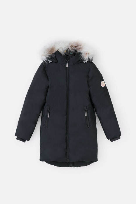 Пальто для девочки с натуральным утеплителем из гипоаллергенного гусиного пуха (70%) и пера (30%). Рекомендованный температурный режим - от -5° до -30°.