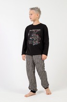 Трикотажная пижама из натурального хлопка. Джемпер с длинными втачными рукавами и брюки с эластичной резинкой в поясе. Мягкие манжеты на рукавах и по низу брюк. Оригинальная набивка выполнена из стойких текстильных гипоаллергенных красителей. Изделие сохраняет цвет и форму после многократных стирок. Все трикотажные полотна производятся в соответствии с нормами швейцарского сертификата ЭкоТекс.