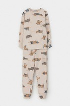 Трикотажная пижама из натурального хлопка. Джемпер с длинными втачными рукавами. У брюк в комплекте мягкий, эластичный пояс на резинке. Оригинальная набивка выполнена из стойких, гипоаллергенных текстильных красителей. Комплект сохраняет цвет и форму после многократных стирок. Все трикотажные полотна производятся в соответсвии с нормами Швейцарского сертификата ЭкоТекс.