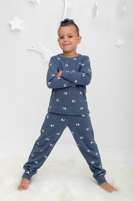 Трикотажная пижама из натурального хлопка. Джемпер с длинными втачными рукавами и брюки с эластичной резинкой в поясе. Мягкие манжеты на рукавах и по низу брюк. Оригинальная набивка выполнена из стойких текстильных гипоаллергенных красителей. Изделие сохраняет цвет и форму после многократных стирок. Все трикотажные полотна производятся в соответствии с нормами швейцарского сертификата ЭкоТекс.