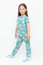 Трикотажная пижама в рубчик из натурального хлопка. Футболка с короткими втачными рукавами и шорты с эластичной резинкой в поясе. Оригинальная набивка выполнена из стойких текстильных гипоаллергенных красителей. Изделие сохраняет цвет и форму после многократных стирок. Все трикотажные полотна производятся в соответсвии с нормами швейцарского сертификата ЭкоТекс.