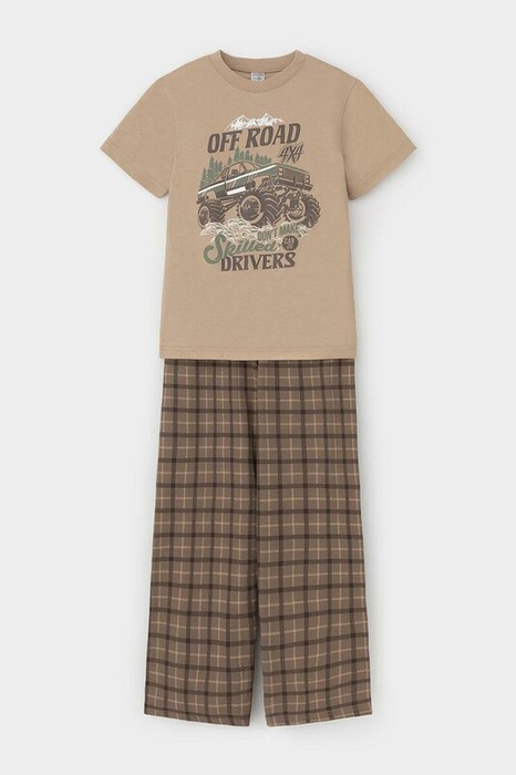 Трикотажная пижама из натурального хлопка. Футболка с короткими втачными рукавами и прямые брюки с эластичной резинкой в поясе. Оригинальные набивка и принт выполнены из стойких гипоаллергенных текстильных гипоаллергенных красителей. Изделие сохраняет цвет и форму после многократных стирок. Все трикотажные полотна производятся в соответсвии с нормами швейцарского сертификата ЭкоТекс.
