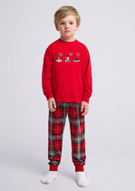 Трикотажная пижама из натурального хлопка. Джемпер с длинными втачными рукавами и прямые брюки с эластичной резинкой в поясе. Оригинальные набивка и принт выполнены из стойких гипоаллергенных текстильных гипоаллергенных красителей. Изделие сохраняет цвет и форму после многократных стирок. Все трикотажные полотна производятся в соответсвии с нормами швейцарского сертификата ЭкоТекс.