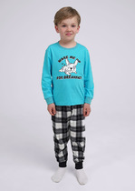 Трикотажная пижама из натурального хлопка. Джемпер с длинными втачными рукавами и прямые брюки с эластичной резинкой в поясе. Оригинальные набивка и принт выполнены из стойких гипоаллергенных текстильных гипоаллергенных красителей. Изделие сохраняет цвет и форму после многократных стирок. Все трикотажные полотна производятся в соответсвии с нормами швейцарского сертификата ЭкоТекс.