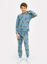 Трикотажная пижама из натурального хлопка. Футболка с короткими втачными рукавами и прямые брюки с эластичной резинкой в поясе. Оригинальная набивка выполнена из стойких гипоаллергенных текстильных гипоаллергенных красителей. Изделие сохраняет цвет и форму после многократных стирок. Все трикотажные полотна производятся в соответсвии с нормами швейцарского сертификата ЭкоТекс.