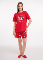 Трикотажная пижама из натурального хлопка для комфортного сна и отдыха. Рубашка на пуговицах с короткими рукавами и свободные шорты с мягкой эластичной резинкой в поясе. Гладкий материал приятен к телу, не теряет форму и позволяет коже дышать. Набивной рисунок выполнен из стойких текстильных гипоаллергенных красителей. Все трикотажные полотна производятся в соответствии с нормами швейцарского сертификата ЭкоТекс.
