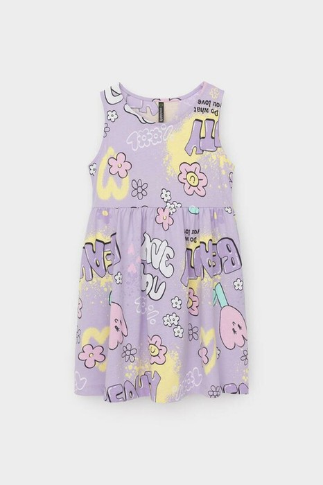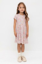 Легкое трикотажное платье для девочки из высококачественного хлопка. Оригинальная набивка выполнена из стойких текстильных гипоаллергенных красителей. Изделие сохраняет цвет и форму после многократных стирок.