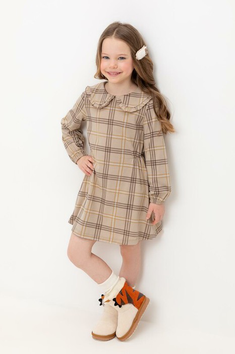 Совместные покупки Нижневартовск Детская одежда Платья — Crockid платье для дев КР 5890/тем.бежевый,текстильная клетка к493