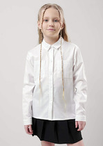 Свободная трикотажная рубашка для девочки с капюшоном. Выполнена из мягкого петельчатого футера. Застёгивается на кнопки. Модель с закругленным низом и спущенным плечом. По бокам разрезы.