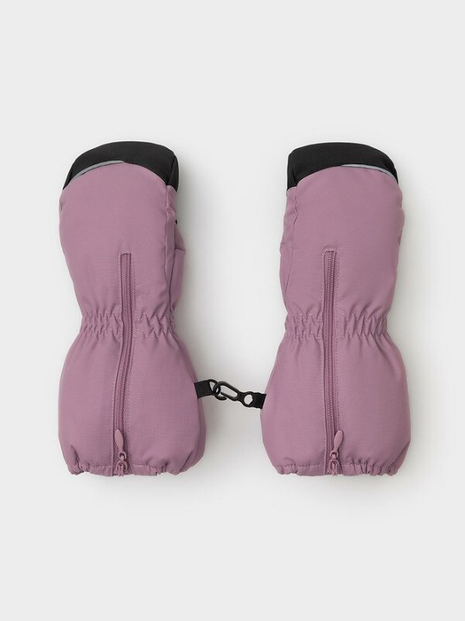 Детские утеплённые рукавицы из однотонной мембранной ткани со вставками из искусственной кожи. Удлинённые манжеты на молнии. Мягкий подклад из флиса. Пластиковый карабин для скрепления рукавиц между собой. Светоотражающие элементы.