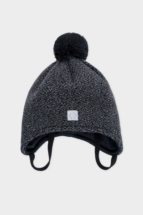 Шапка из полушерсти на завязках с синтепоновым утеплителем. Подклад из натурального хлопка. Полностью закрывает голову, уши и шею, защищая ребёнка от холодного воздуха и ветра. На макушке помпон. Изделие сохраняет форму и стойкий цвет после многочисленных стирок.
