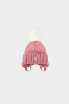 Шапка из хлопковой пряжи на завязках с мягким трикотажным подкладом из интерлока. Связана гладью. На передней части шапочки пришит светоотражатель. На макушке рулик.