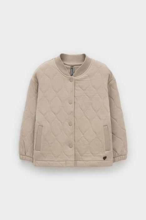 Тёплый бомбер из капитония для девочки. Застёгивается на кнопки. Эластичные манжеты на резинке. Капитоний - это стёганое трикотажное полотно с утеплителем из полиэстеровой нити. Все трикотажные полотна производятся в соответствии с нормами швейцарского сертификата ЭкоТекс.