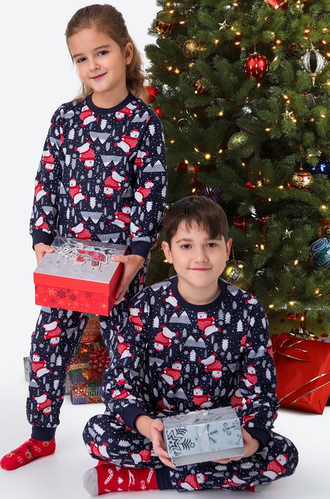 Домашняя пижама с рождественским рисунком и надписями станет отличным решением для семейной фотосессии.