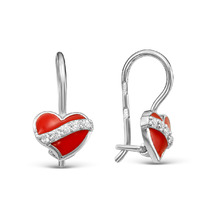 Детские серебряные серьги с фианитами цвета рубин 077