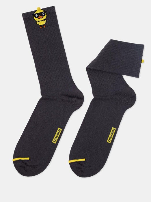 Удлиненные носки в рубчик с объемным вывязанным рисунком и декоративным пикотом станут оригинальным акцентом в повседневном, спортивном или домашнем образе.