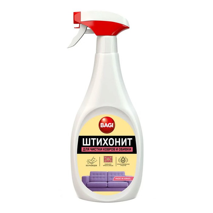 Способ применения: Для очистки пятен, подлокотников кресел, сидений автомобилей: смочить теплой водой загрязнение, распылить на него небольшое количество средства и протереть мягкой щеткой, смоченной в теплой воде. После чистки для ускорения высыхания используйте пылесос и оставьте ковер до полного высыхания