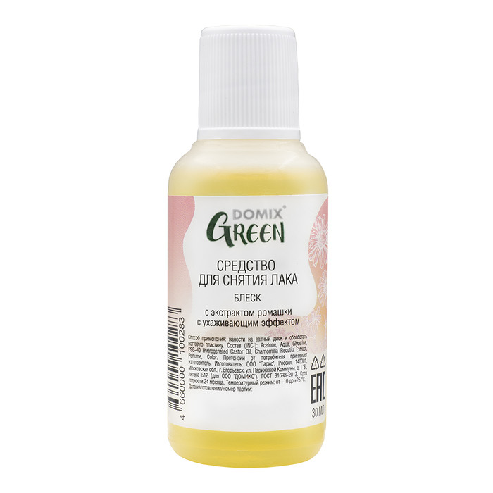 Совместные покупки Нижневартовск Косметика и парфюмерия Прочее — Domix Green Блеск 30мл пл Средство д/сн.лака с экстр.ромашки с ухажив.эффектом