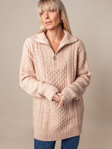 Vilatte Теплый свитер из хлопка с акрилом и золотистой молнией D34.180 св.бежевы