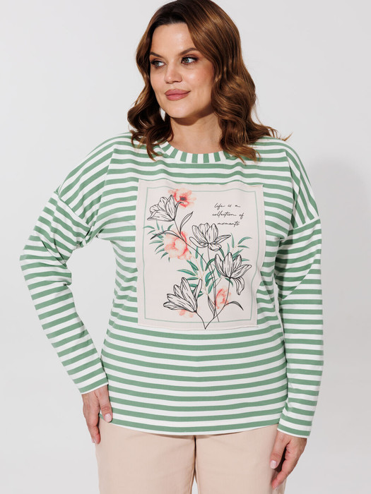 Джемпер из мягкого трикотажа- тренд сезона весна/лето. Элегантный, для любого мероприятия. Благодаря стильному дизайну полоска и приятной фактуре материала станет для Вас одним из самых любимых джемперов. Силуэт полуприлегающий, со спущеной линией плеча, с длиным рукавом, круглый вырез горловины, акцент сделан на дизайнерскую печать, цветочный принт. Спинка лаконичная. Идеально подходит для выхода с друзьями, на работу, театр и повседневной носки.