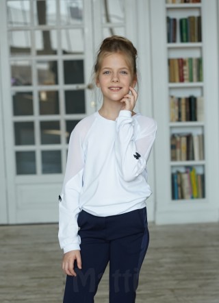 Джемпер для девочек, выполнен из высококачественного трикотажа качества пенье. Джемпер свободный на выпуск, по низу пояс.Покрой рукава реглан. Верхняя часть рукава выполнена из шифона. Джемпер в спортивном стиле особенно элегантен, а также очень удобен для повседневного ношения.