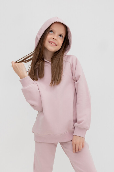 Толстовка с капюшоном для девочки из футера с начесом. В составе 80% натурального хлопка и 20% полиэстера, при этом полиэстер ввязан внутрь по особой технологии и не соприкасается с кожей. Оригинальная набивка выполнена из стойких текстильных красителей. Манжеты и пояс из эластичного трикотажа.