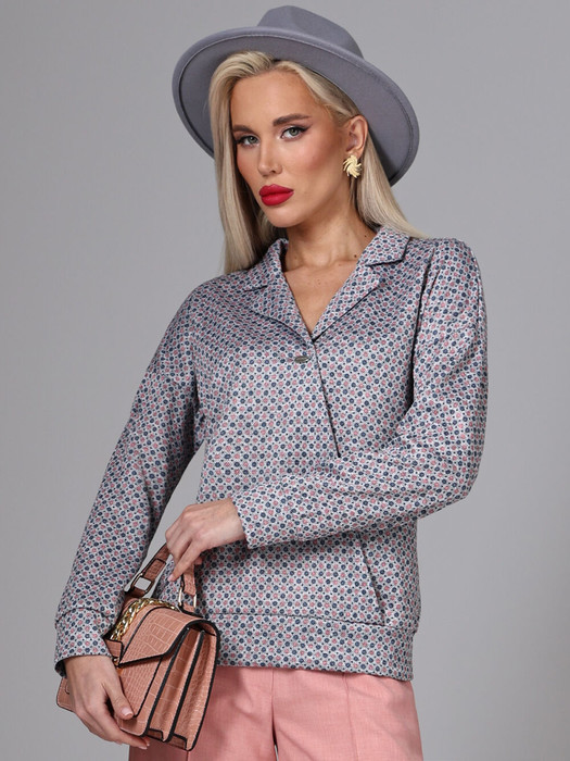 Универсальная трикотажная блузка, не имеющая привязки к сезону. Комфортный материал и свободный силуэт с поясом на бедрах обеспечит свободу движения и приятные ощущения в течение целого дня. При этом классический отложной воротник придает блузке нотку элегантности. Стильные нюансы модели: асимметричная складка по переду от воротника и металлический логотип бренда.
