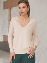 Vilatte Джемпер тонкой вязки из хлопка с кашемиром D39.352 бежевый меланж