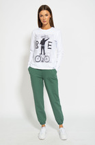 Джемпер выполнен из трикотажного полотна в рубчик. Джемпер прямого силуэта, покроя "oversize", длиной до линии бедер. Спереди и на спинке отрезные части. Воротник-стойка. Плечевой шов удлинен. Рукав рубашечного покроя, одношовный, с широкой манжетой по низу. В боковых швах разрезы.