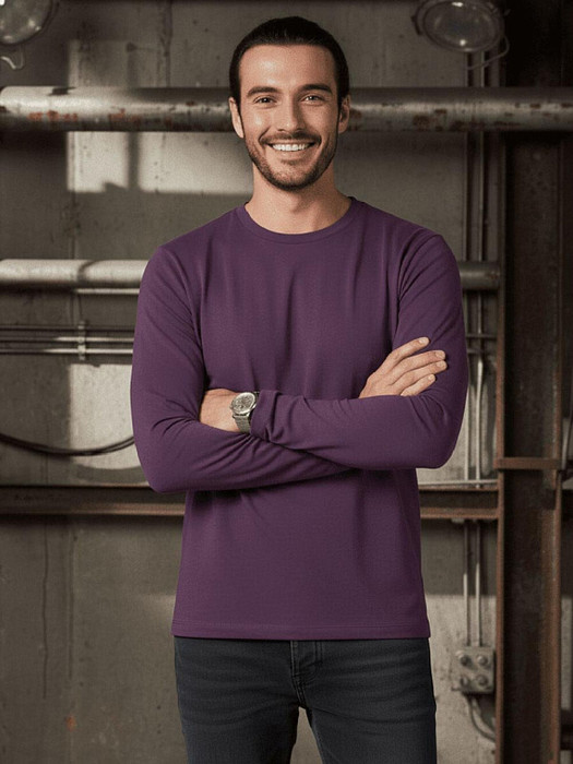 Мужская футболка F5, Regular fit (полуприлегающий силуэт), круглый вырез горловины, длинный рукав. Выполнена из классического трикотажного полотна.