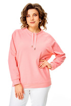 Свободный трикотажный джемпер поло с длинным рукавом- удобная и стильная одежда на все сезоны. По горловине пришит воротничок на стойке, спереди сделана планка с пуговичками. Рукав втачной, немного спущен, внизу на манжете. По боковым швам снизу сделаны разрезы