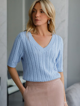 Vilatte Джемпер фактурной вязки из хлопка с кашемиром D39.349 голубой меланж