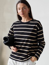 Vilatte Лонгслив с принтом из премиального хлопка с эластаном D49.148 черный-беж