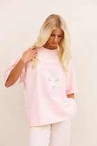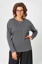 Джемпер женский из трикотажной хлопковой ткани (двунитка). Рукав реглан. Низ рукава обработан притачной манжетой. Низ изделия оформлен притачным поясом. На спинке настрочен декоративный элемент. Вырез горловины круглый, обработан бейкой со шнуром.