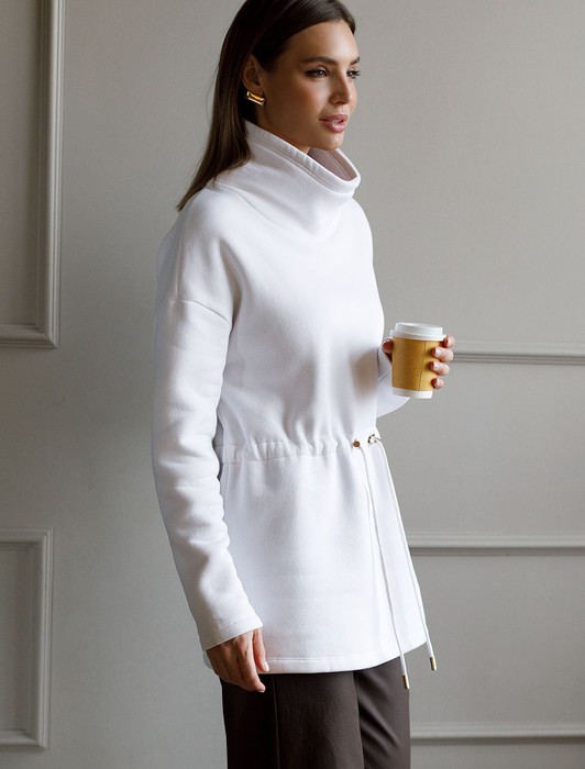 Джемпер с объемным воротом и шнуром на талии из футера-трехнитки