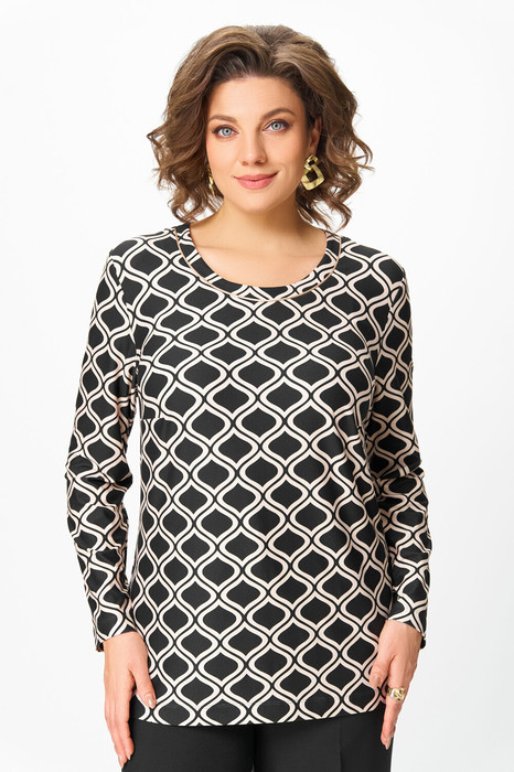 Горловина круглая, спереди обработана обтачкой с декоративным кантом. Рукав втачной, длинный.