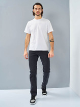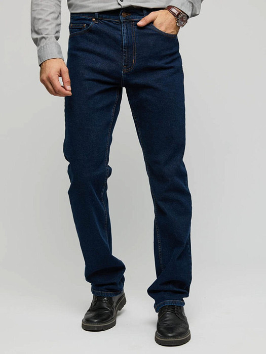 Мужские классические джинсы с пятью карманами. Посадка Regular fit (полуоблегающие по бедру), высокая талия, немного заужены к низу. Застежка на молнии. Выполнены из слабоэластичной ткани denim comfort stretch. Классическая темная стирка с потёртостями только по швам.