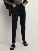 Брюки расширеные книзу на притачном поясе из джинсовой хлопковой  ткани. По поясу настрочены шлевки. По передним и задним частям брюк вытачки. На задних частях брюк настрочены карманы. Карманы, вытачки, пояс, низ брюк отделаны отделочной строчкой. Длина брюк с учетом пояса - 109 см