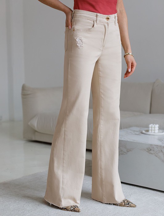 Состав: 98%Хлопок 2%ПУДжинсы клеш от колена с клином бежевого цвета выполнены из эластичного денима плотностью 11 OZ - легкость и свобода движений, подходят для активного дня. Эта модель — воплощение стиля гранж и ретро-эстетики в современном исполнении. Главная фишка — эффектные прорези под передним карманом и на заднем кармане, которые добавляют образу смелости. Дизайн дополнен необработанным нижним краем. Особенность модели — эффектные клинья, вшитые в боковые швы, которые создают расширеннй крой к низу. Джинсы визуально удлиняют ноги и подчеркивает округлые бедра, создавая женственный образ без лишних усилий. Джинсы подходят на большие размеры, позволяя чувствовать себя уверенно, специальный крой выгодно выделяет достоинства и мягко маскирует возможные нюансы фигуры. Качественная фурнитура и нашивка из эко-кожи с логотипом бренда делают эти джинсы премиальными. Такие стильные джинсы идеально вписываются в образы в стиле бохо-шик или современный кэжуал.